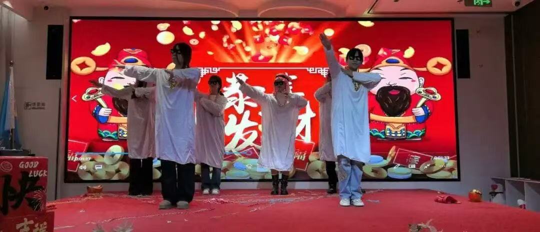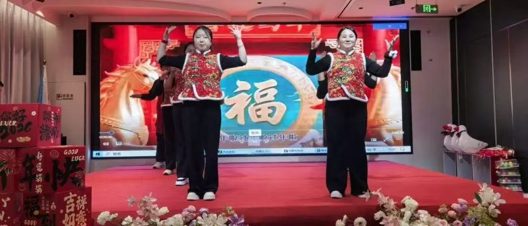 领导致辞落下帷幕,才艺表演环节随即登场,各部门员工踊跃登台,献上了一场视听盛宴。市场二部的小伙伴们率先带来2026马年手势舞,整齐划一的动作、灵动活泼的姿态,搭配着充满新春喜气的背景音乐,瞬间将现场的欢乐氛围拉满,也寄托了大家对即将到来的丙午马年的美好期许;市场一部的同事们别出心裁,带来一段原创三句半,台词句句接地气,包袱抖得恰到好处,既调侃了工作中的趣事,又歌颂了团队的凝聚力,逗得全场观众捧腹大笑;此外,身着俏皮青蛙服带来的创意舞蹈串烧、财务部献上寓意满满的舞蹈《八方来财》等等节目,将美好的新年祝愿融入表演之中;每个节目都各具魅力,充分展现了京禹达人多才多艺、活力四射的精神风貌。